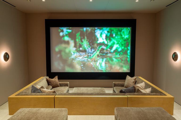 Enjoy total convenience with intuitive control systems from Savant, Crestron, and Control4. With a single touch or voice command, you can adjust lighting, sound, and climate settings, creating the perfect ambiance for every movie night.